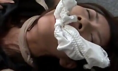 Asian nubile bound and gagged made to orgasm!