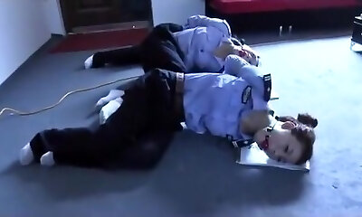 Chinese police woman tied up