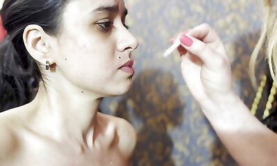 نازک قبل از ازدواج در مهار, محروم و سپس با دست به کفل زده فوق العاده زیبا و دلفریب