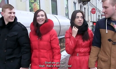 Jiggly teen gals fucked brutally in a doggy position in foursome sex clip