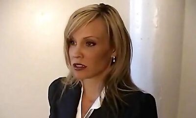Bossy blonde office cockslut dominates and humiliates workers at work
