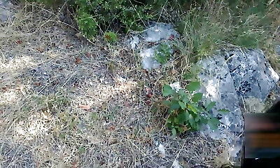 Public Pegging Outdoors, Two Cumshots for Russian Mistress