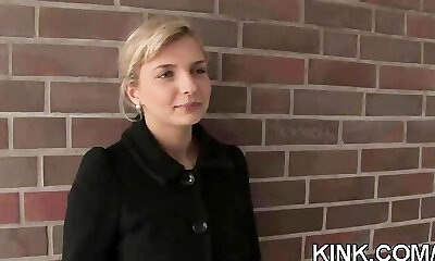 Kinky brunette likes to get roped up and forced to cum, after she gets throatfucked