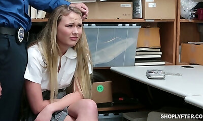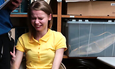 Ash-blonde teen babe caught shoplifting and forced to nail in a warehouse