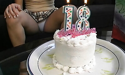 18th Birthday – horny blonde gets her first dildo